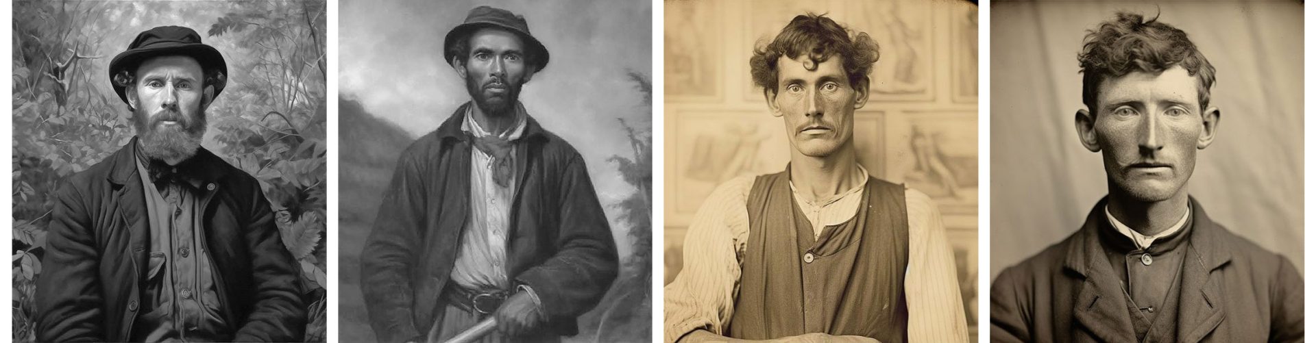 From left to right: James Cunningham, William Williamson, Peter Hansen and William Sharkey. AI generated images by Jonathan Newnham.